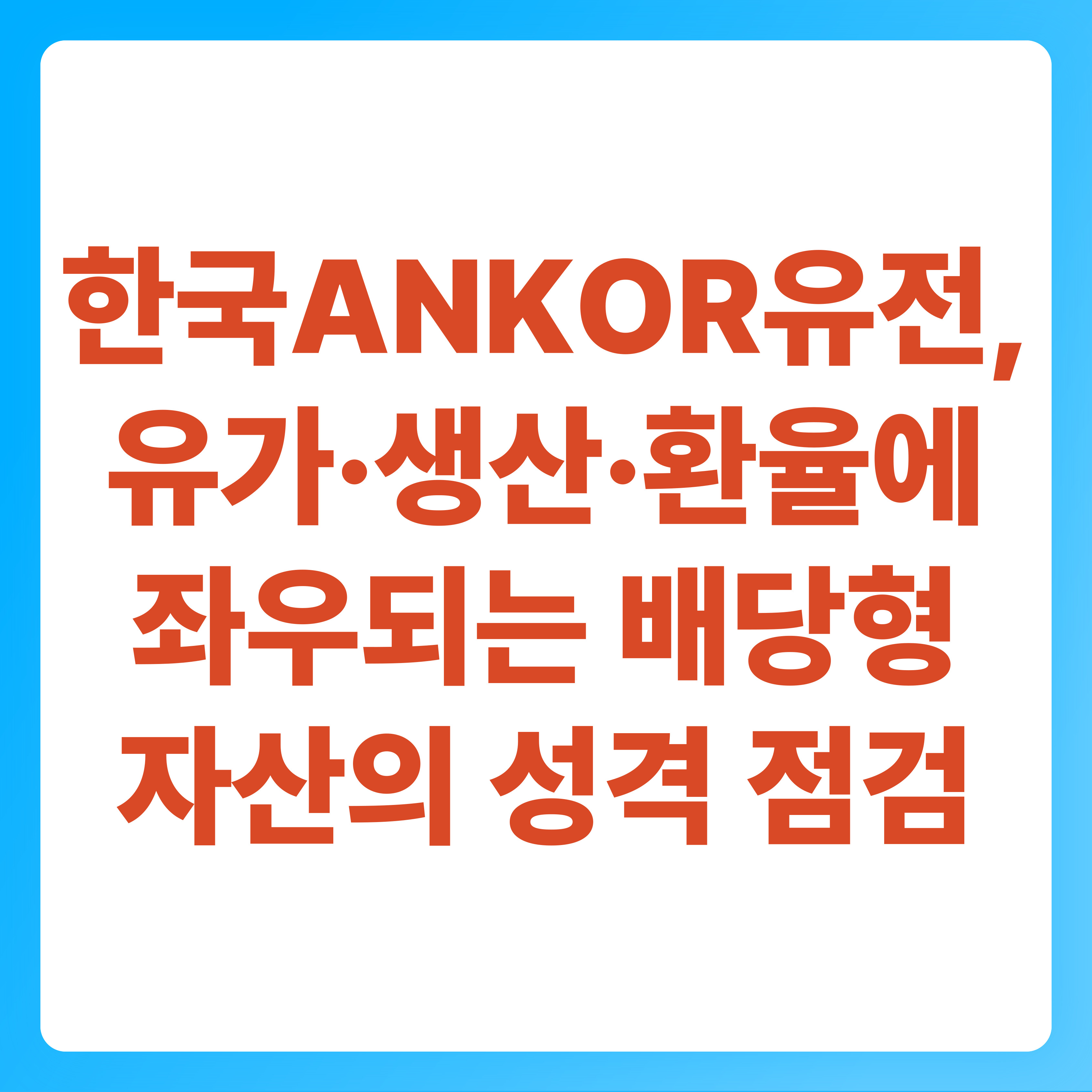 👉🌿 따라서 한국ANKOR유전은 전통적인 성장주 프레임보다, 배당·분배 성격의 자산을 평가하듯 “현금흐름의 지속성”과 “감산·고갈 같은 구조적 리스크”를 함께 저울질하는 편이 자연스럽습니다.